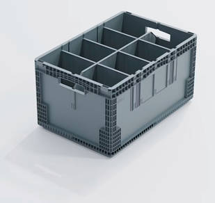 The easy2divide partitioning system allows for fast and flexible internal configuration according to the type of goods and processes. Integrated drainage holes meet FM Global requirements, and the box is easily detectable by sensors.
