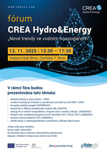 CREA Hydro & Energy vás zve na fórum, které se bude věnovat novým trendům ve vodním hospodářství.