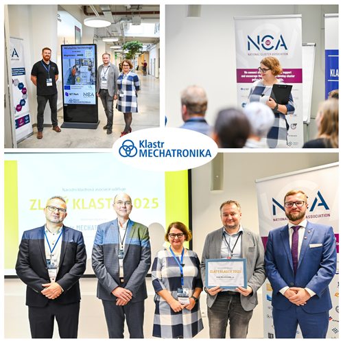 Zlatý klastr 2025 získal Klastr MECHATRONIKA, z. s. - za dlouhodobý přínos k rozvoji klastrového prostředí v České republice.