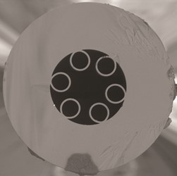 A hollow-core fibre designed to reduce the risk of communication interception by reflectometric sensor systems. The fibre was developed as part of the Ministry of the Interior project “Research on the Sensitivity of Hollow Optical Fibres to Acoustic Spectrum Waves.”